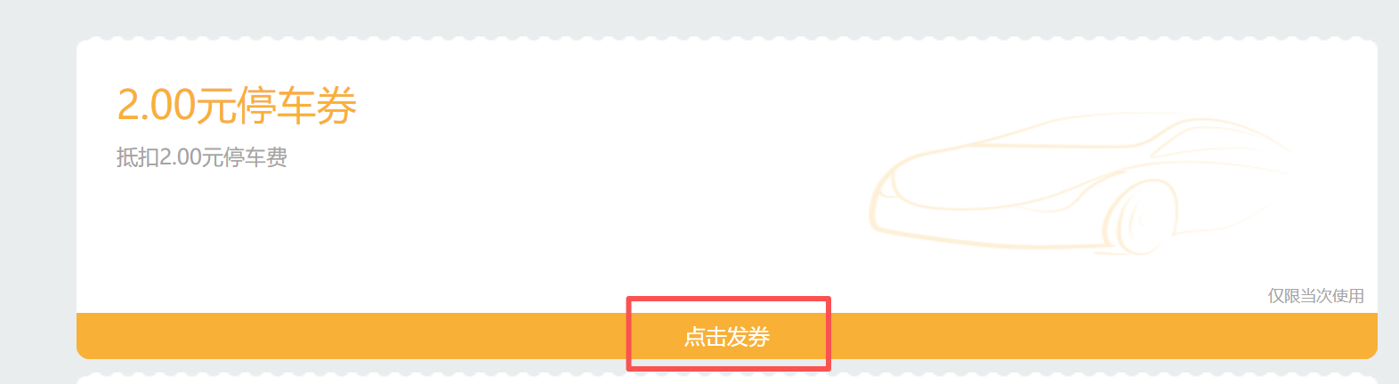 通过点击发券如图5(在停车券右上角标有“静态券”字样),生成静态二维码(类似于图4的二维码),各单位可扫描静态二维码输入车牌号绑定车辆订单,若当前订单金额未超过绑定的停车券面值,车辆可免费离校,若订单金额超过停车券面值,出校门时需补交停车费差额方可离校。静态码扫码后该二维码可继续使用。