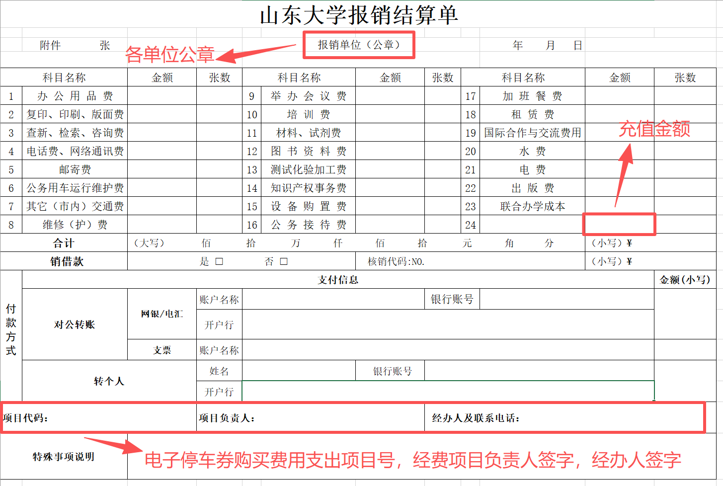 附件2:山东大学报销结算单